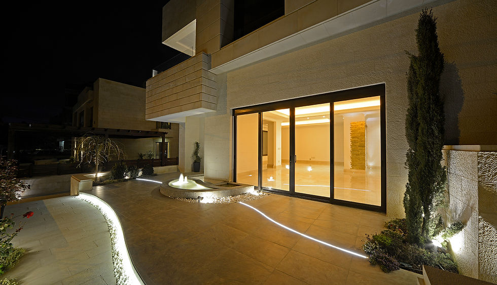 This apartment has two spacious private gardens designed on different levels and connected with a water pathway running from one level to another.